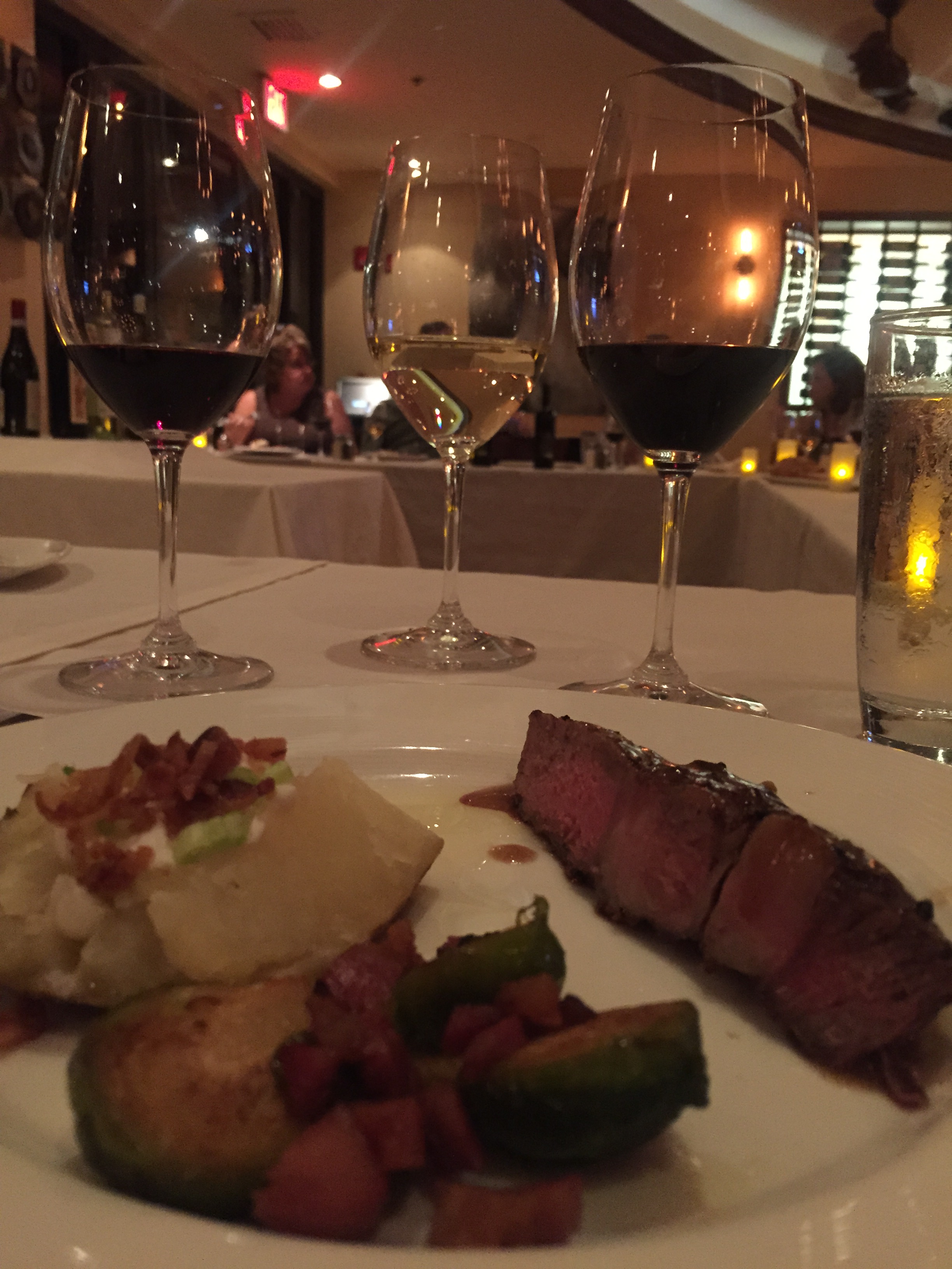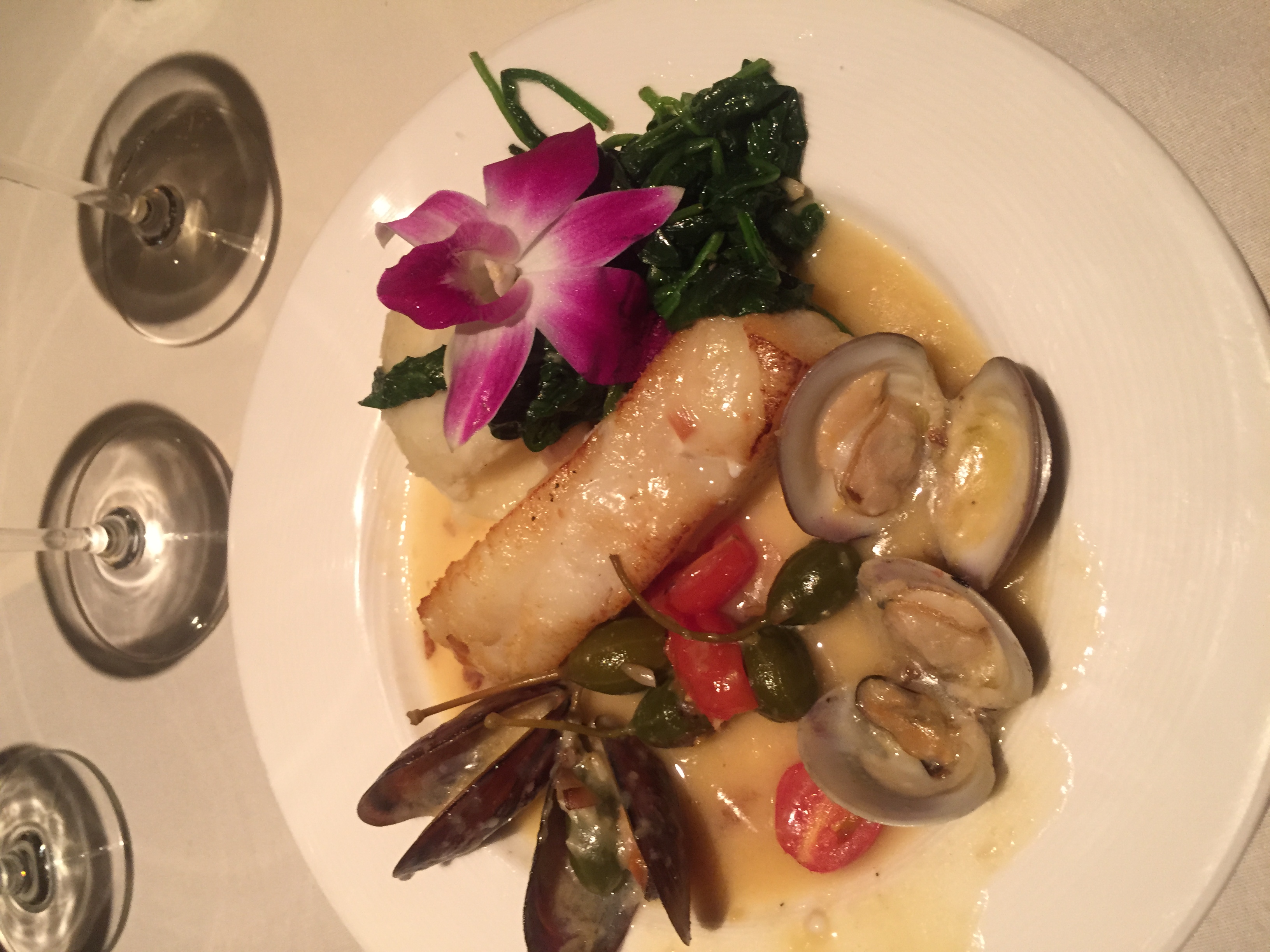 Our fourth course was Chilean Sea Bass with seared Chilean sea bass, mussels, clams, lemon sauce, mashed potatoes & spinach. It was cooked perfectly and was delicious. I would order this again especially when I am not trying to eat low carb so I could enjoy all the mashed potatoes.