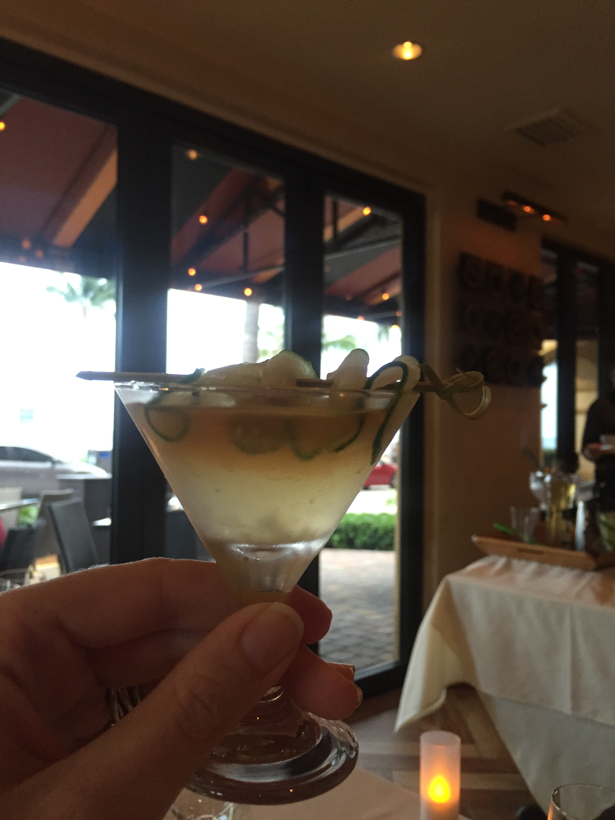 We were treated to a 7 course meal and wine pairing that was kicked off with a Flower Garden Martini a combination of Hendricks Gin, Lime, Cucumber, ST. Germain, Simple Syrup and Bitters made by Mixologist Antonio. It was refreshing and a fun was to kick off the experience.