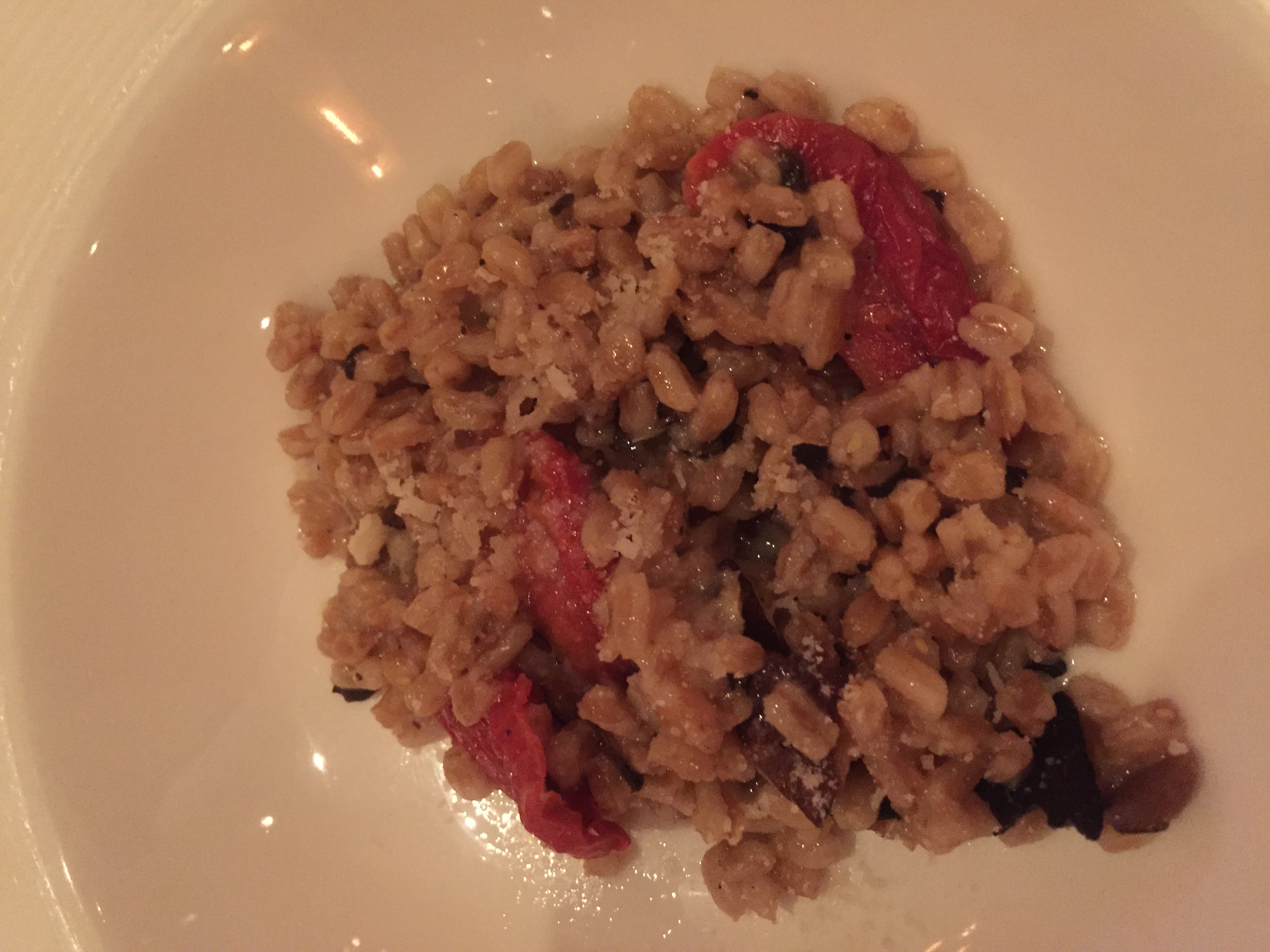 Our fifth course was Farrotto al Tartufo with farro “risotto-style” with black truffles, porcini mushrooms, sun dried tomatoes and parmigiano. I wish I was a mushroom lover. I know I am missing out.