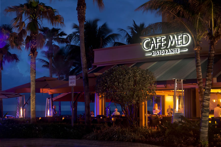 Cafe Med is located at 2096 NE 2nd St. in Deerfield Beach, inside the Wyndham Deerfield Beach Resort.