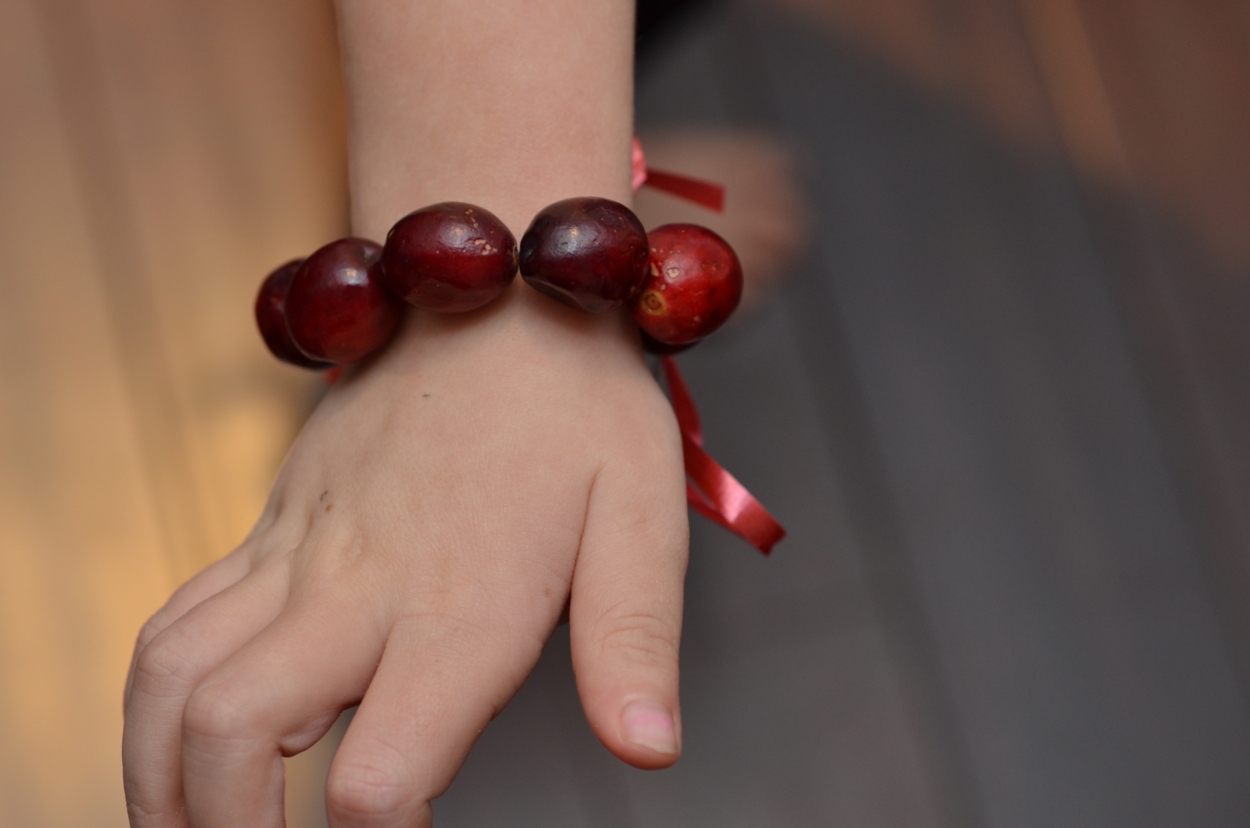 We tied on pieces of ribbon so that it was easy to tie the the jewelry on.