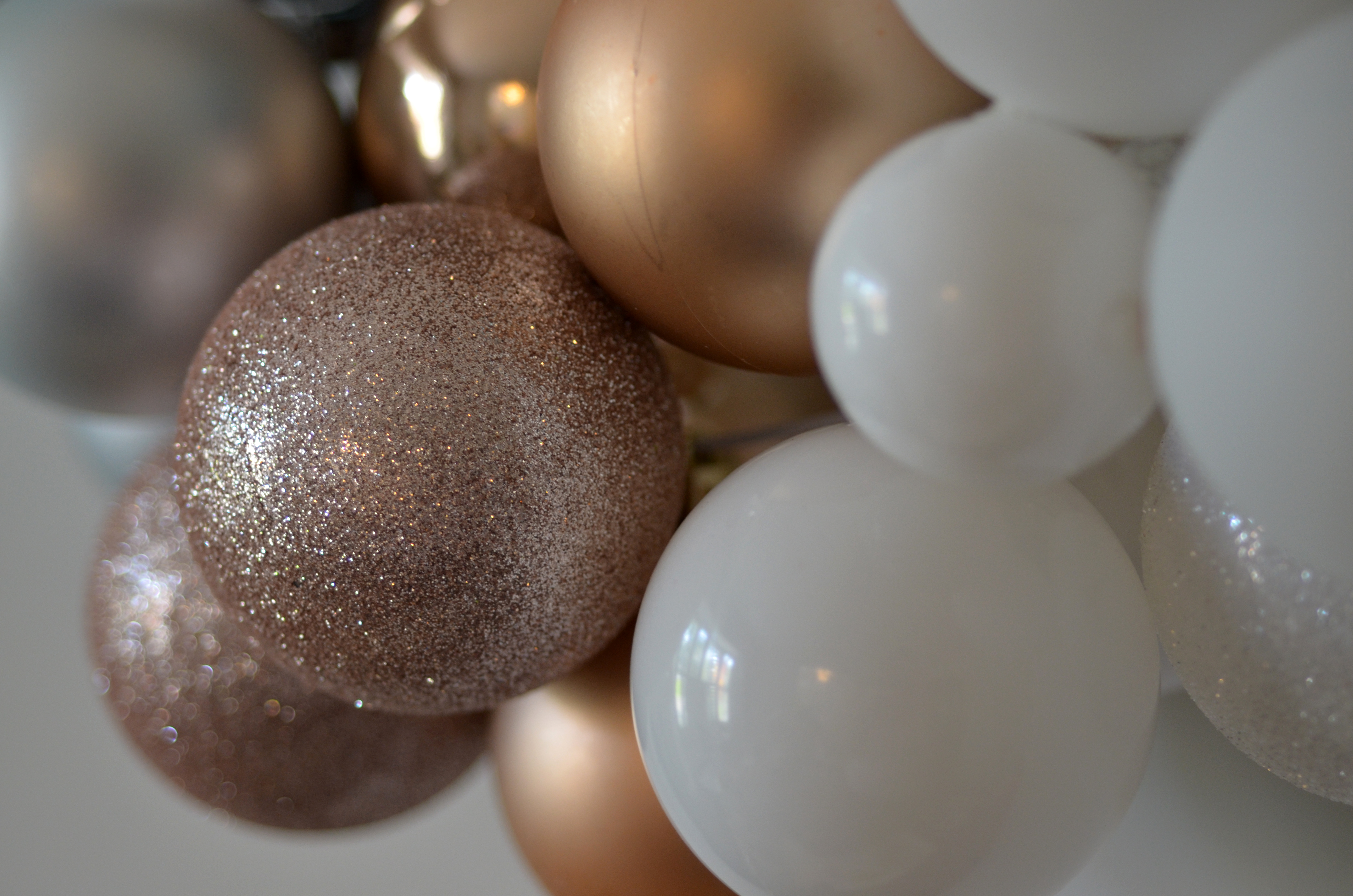 Pro Tip: I originally skipped this step.  I was happy the ornaments were shatterproof because a number of them fell down.  I ended up gluing them after which was more difficult since they were attached to the wire hanger.