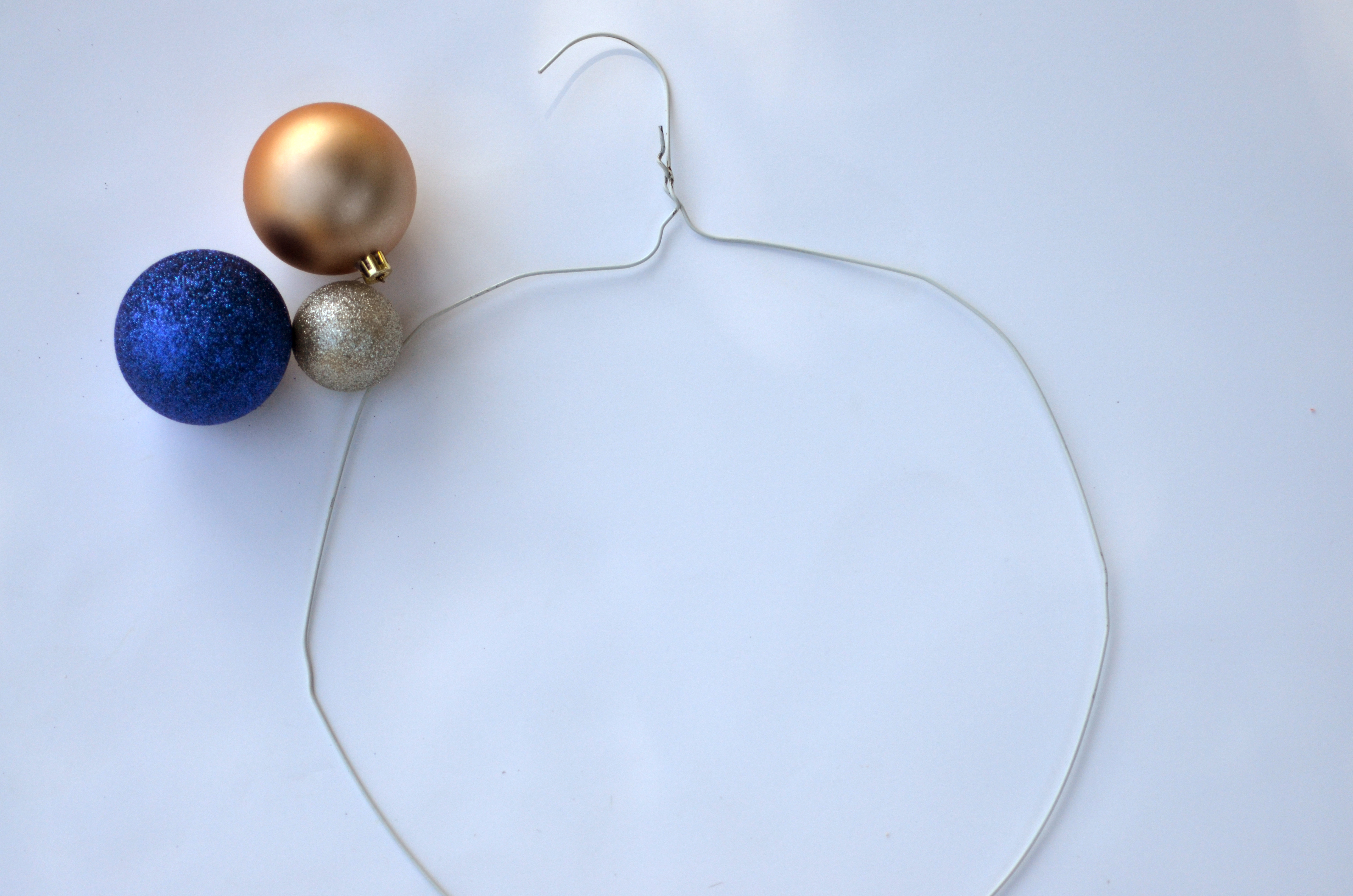 You can use pliers or your hands.  I ended up gluing on the smaller ornaments to fill in the gaps because I originally only purchased large ornaments.