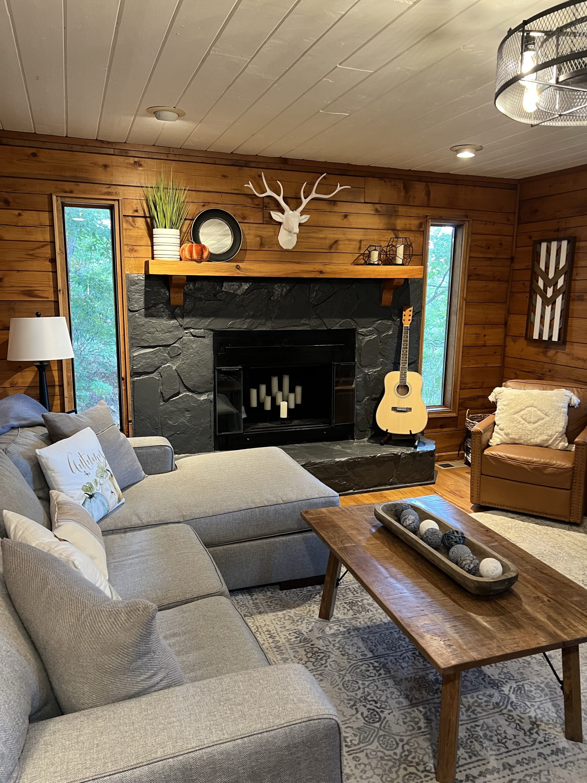 The home would be ideal for a large family or two families since both floors have two bedrooms, a bathroom, and a family room. We all loved the decor. The home is so welcoming with a big fireplace and an open kitchen all overlooking gorgeous trees. You feel like you are a world away up in the mountains, but really you are just 5 minutes from town.