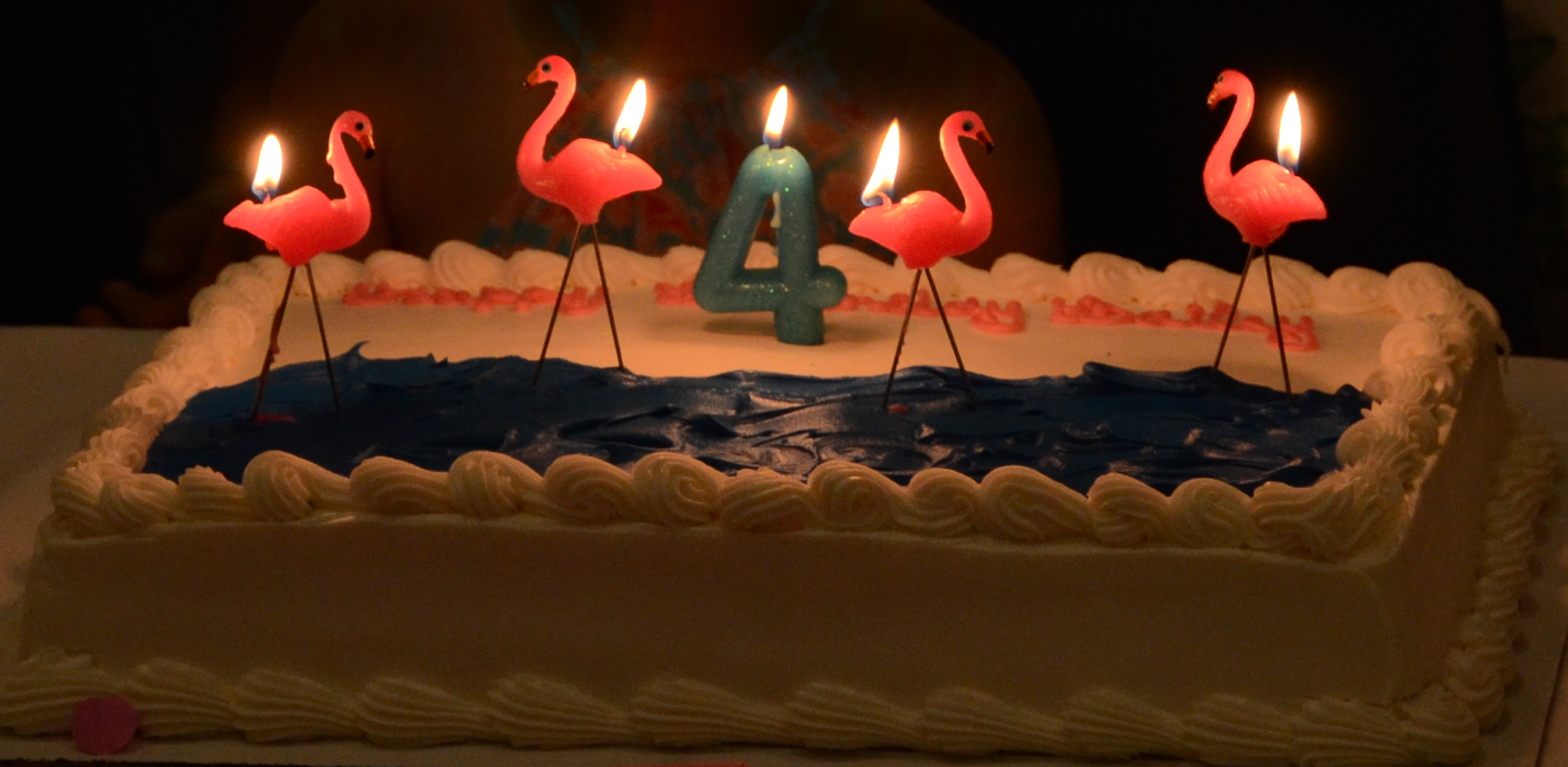 When you have a large crowd there is no better place to go than Costco for a cake. We did not find a design that would work so we took a copy of the invitation and met with one of the bakers. They did a great job of keeping the cake simple so the focus could be on these adorable flamingo candles from Allison at Party Dialect. She even included a sweet note in her package wishing us a great Flamingo Birthday Party. I will be buying from her again!