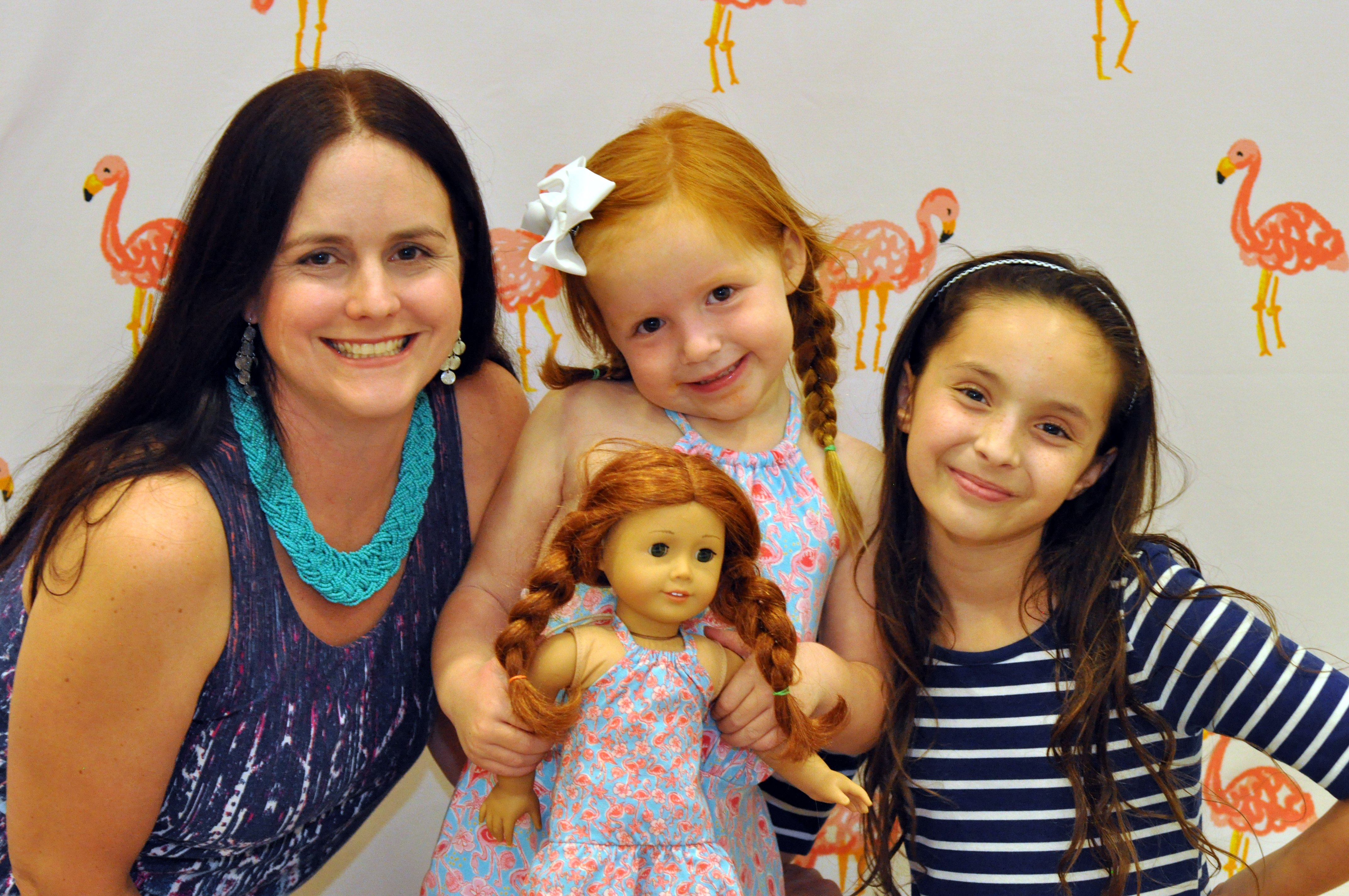 I love to have the birthday boy or girl coordinate with the theme. Bailey loves her baby dolls and we knew the outfit would be even more special if we could find a matching outfit for her doll. This was a harder challenge than I expected. I found outfits I loved, but then I could not find the matching doll outfit. When in doubt go to American Girl. They had the perfect outfit for our Flamingo Birthday Party. We gave it to Bailey as a gift the night before her party. Her reaction was priceless. "I am so surprised, I love this!"