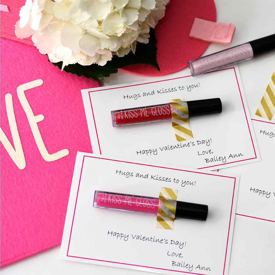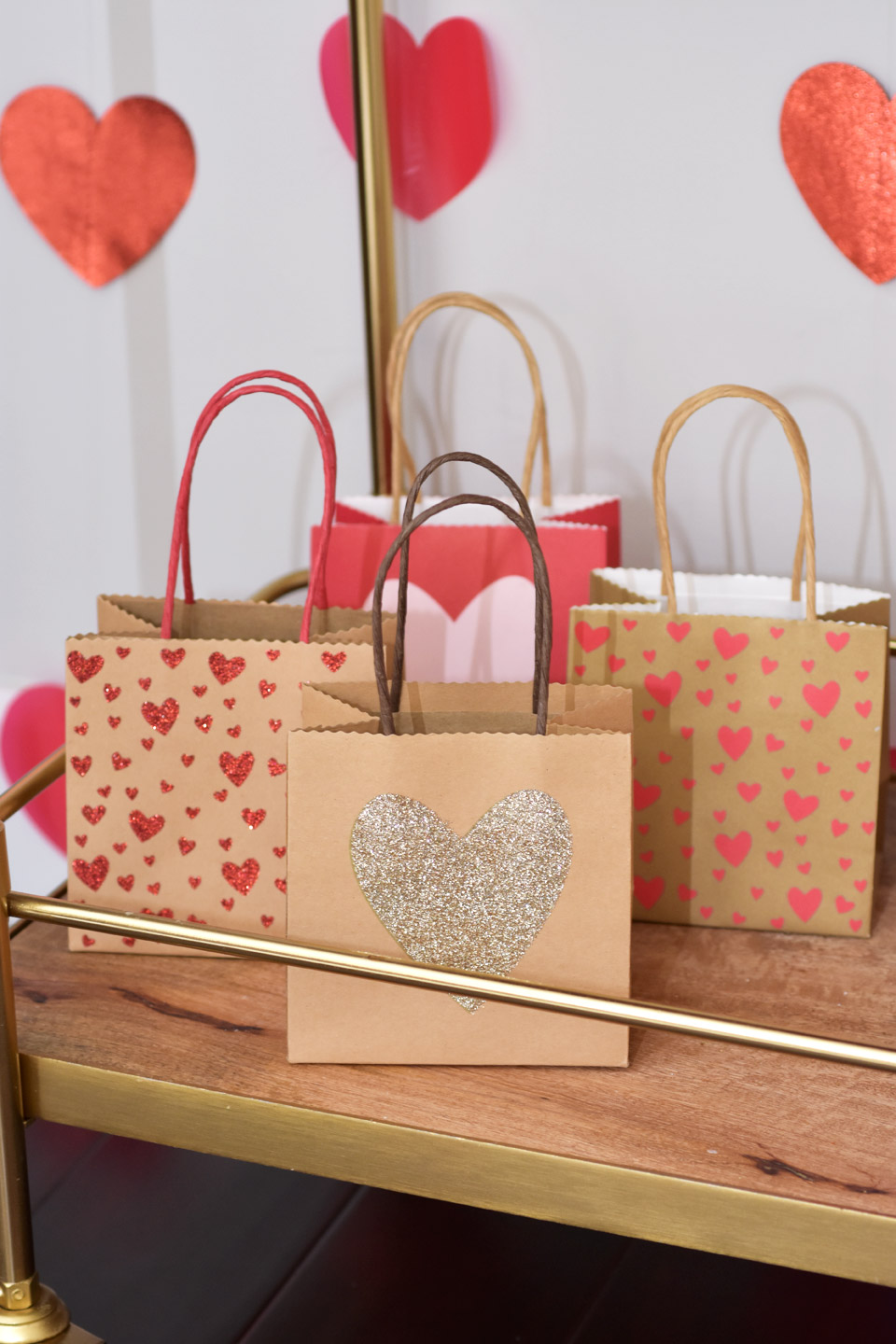 For the favors I recommend providing bags for your guests to easily take home all their cards. We had these adorable heart bags. Included inside was a special Valentine's Day Card from Bailey. She got to pick the type of card she wanted to gift. No surprise she picked the lipstick Valentine's Day Cards.