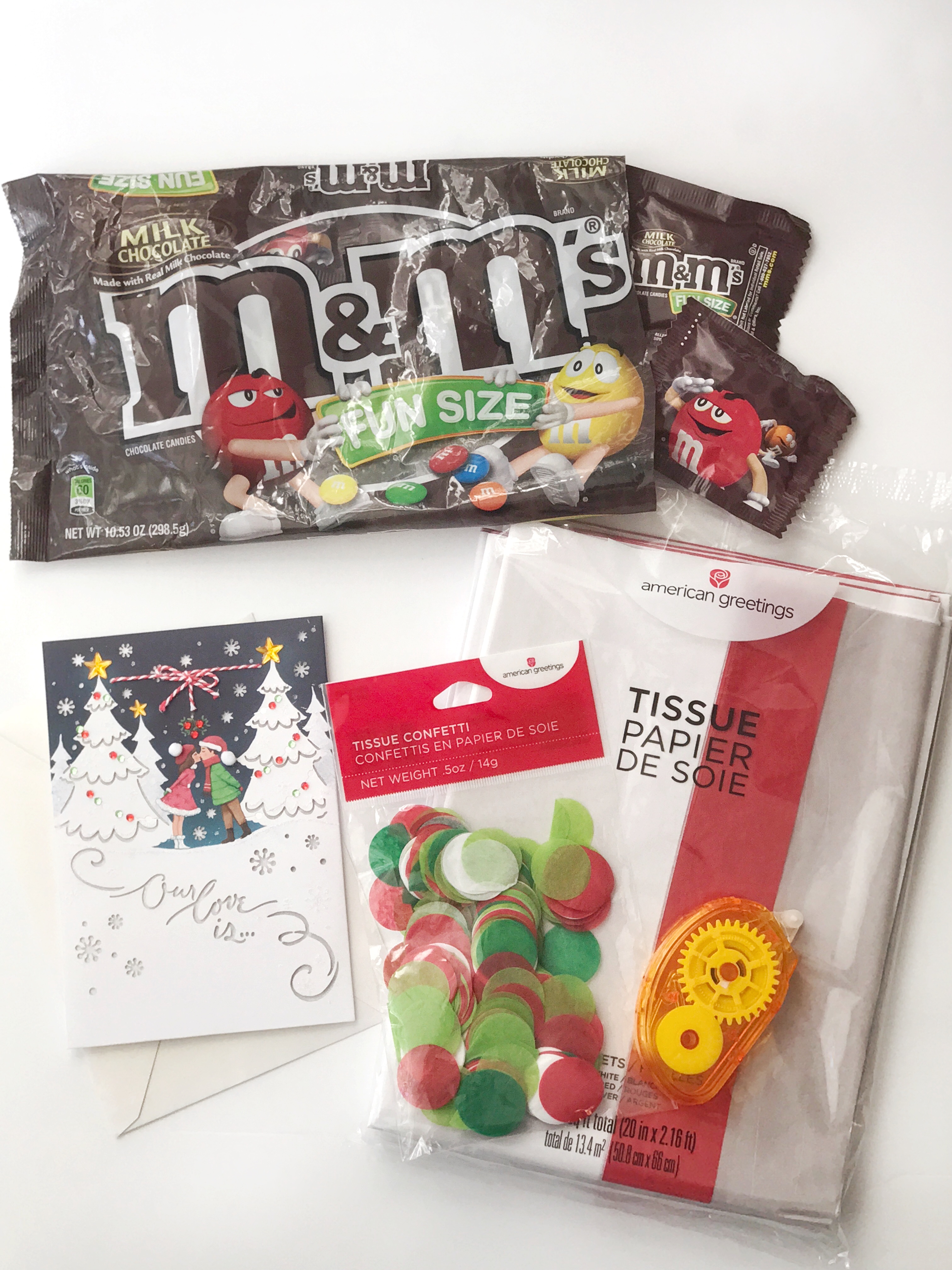 There are so many ways to make the holidays merry and bright. My husband also loves M&Ms so I bought him some snack size M&Ms. I wrapped them up and adding them as a surprise in his lunch.