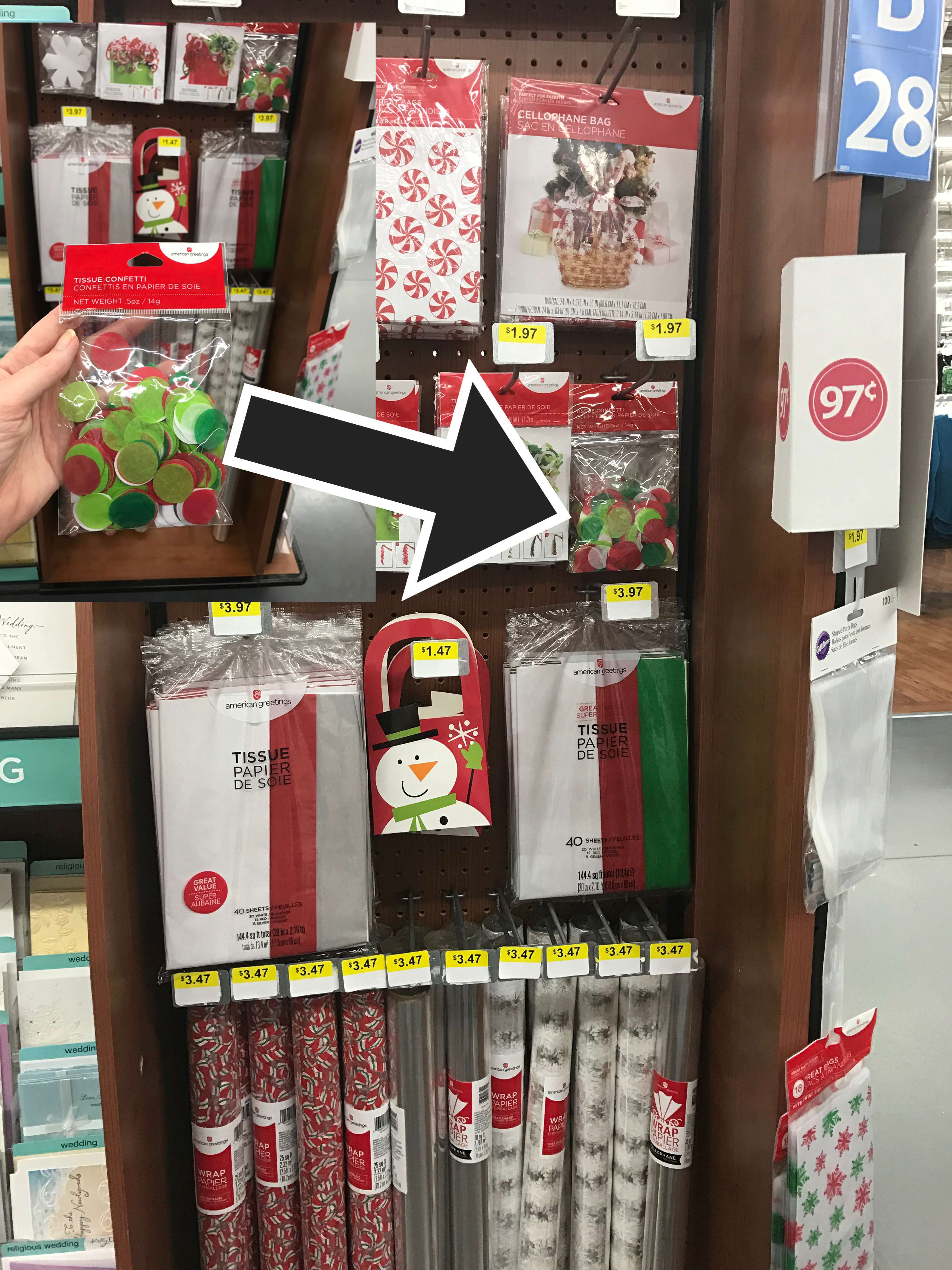 With Walmart’s everyday low prices and American Greetings’ festive bags, tissue, stickers and greetings cards--shoppers can quickly get everything they need to create merry and bright connections.