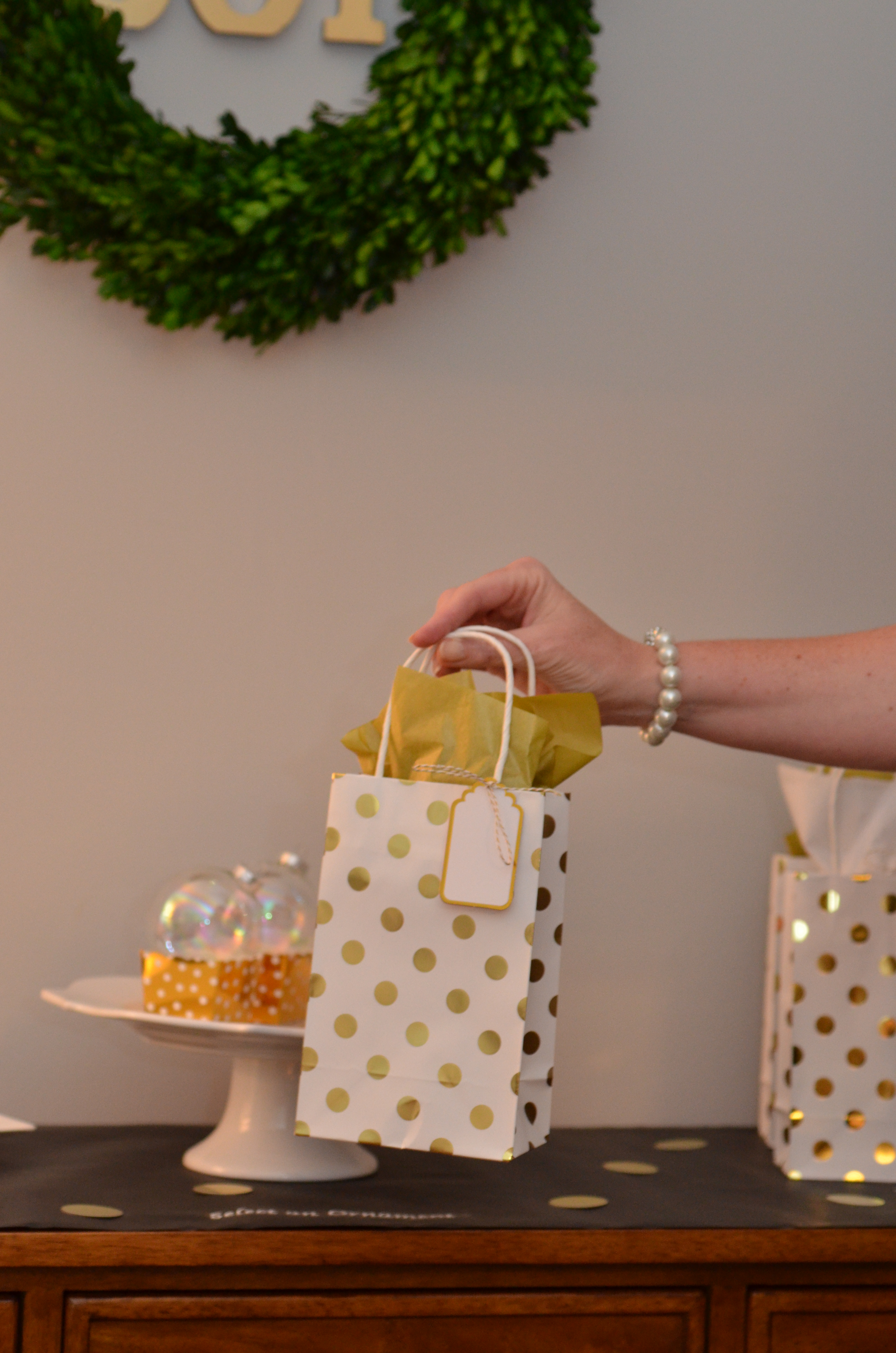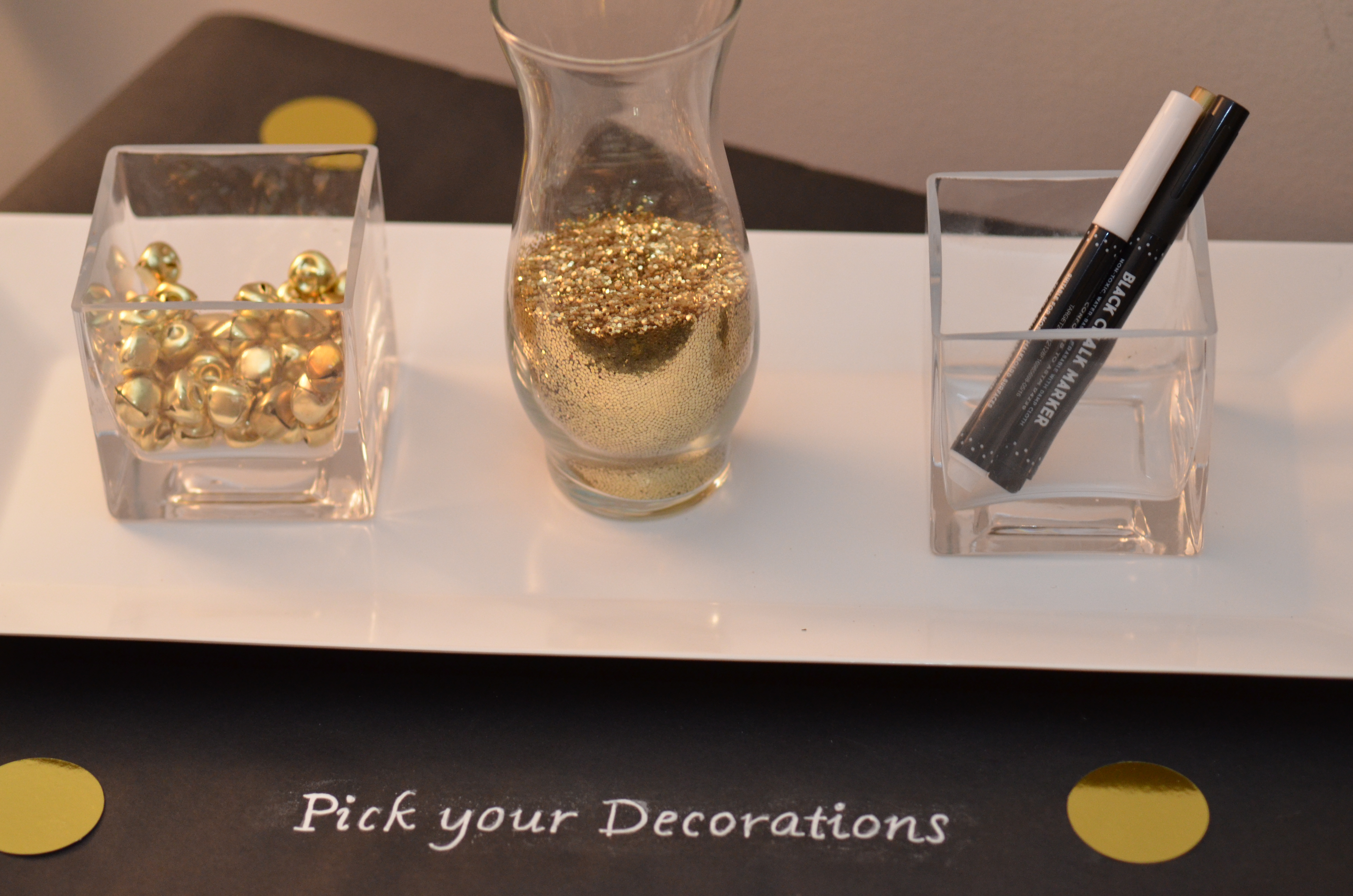 – Chalkboard runner with supplies for our ornament craft all the way to wrapping them.
