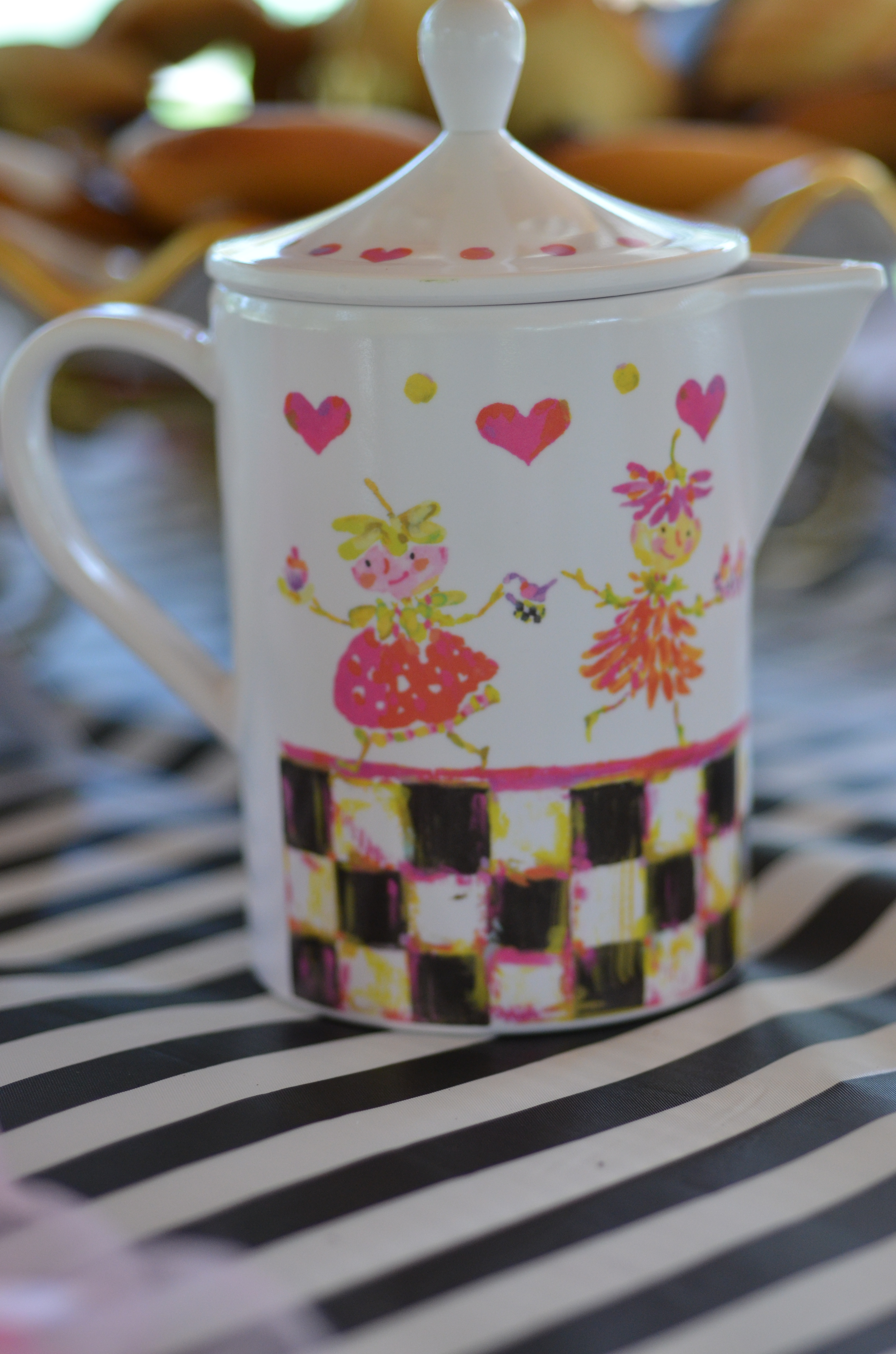 MacKenzie Childs black and white tea party is modern and fun. Simply add some MacKenzie Childs Tea Pots and yummy cookies and you party is ready!