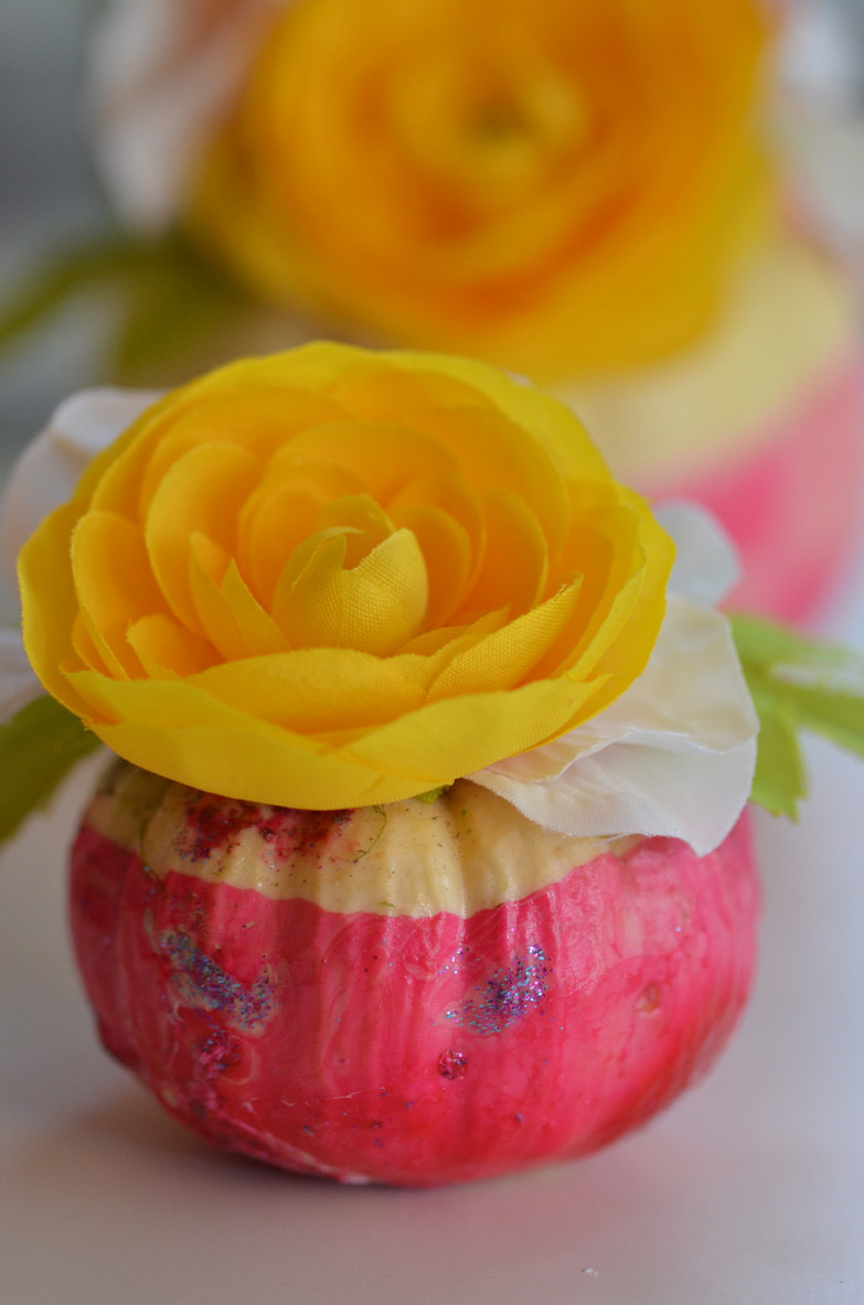 I love pumpkins!!! I have been inspired by the amazing use of color by Kara at Kailo Chic Life and the floral pumpkin magic of Nikki at Boho Garden Crowns  who created the most beautiful gifts for Swoozies 10th Anniversary party. Bailey has been wanting to decorating more pumpkins so I decided to combine some of her favorite things: nail polish, water, pumpkins and flowers.  As a mom and a creative I often struggle between wanting the project to meet my vision and allowing Bailey to do it herself.  This project was perfect because Bailey was able to do most of the steps herself.  Our marbleized floral pumpkins make me so happy.  Hope they make you happy too!