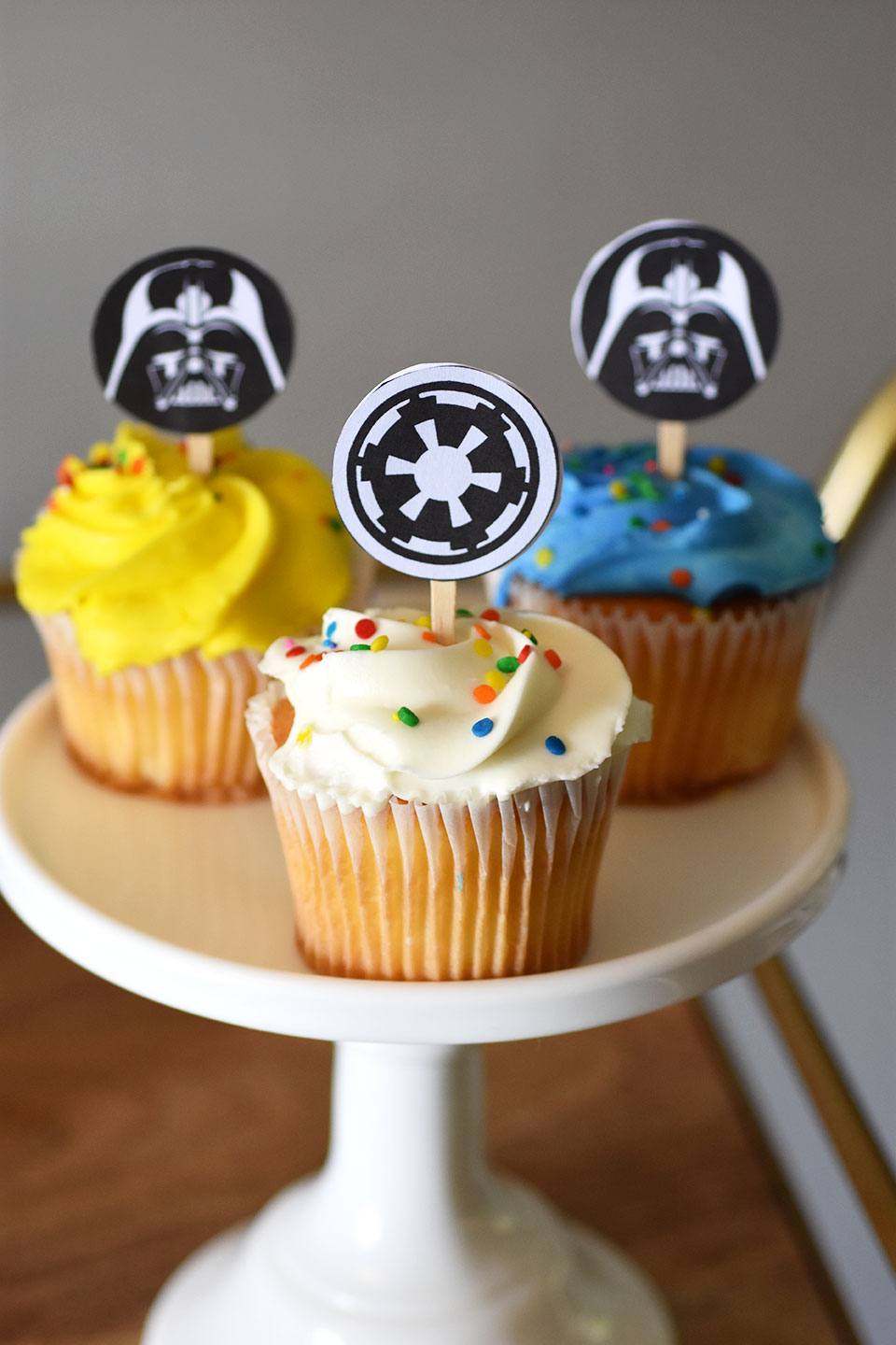 What is a party without cake or cupcakes. The same printable pack from Sarah has these fun cupcake toppers. See how to create them below.