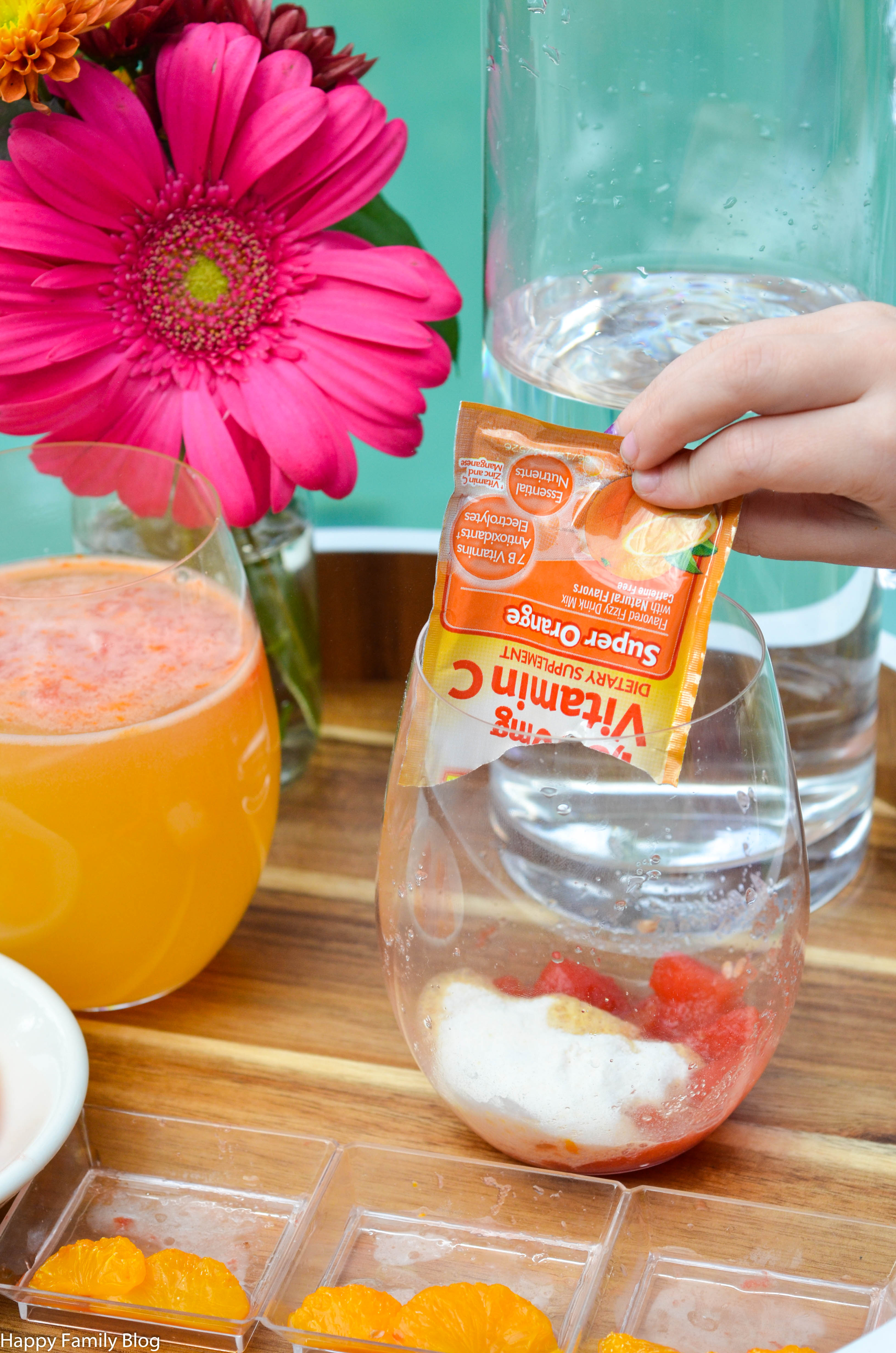 Step 2: Pour 1 pack of Emergen-C orange flavor into your glass