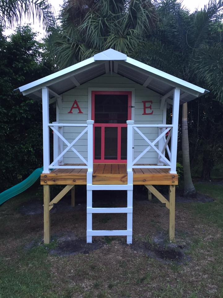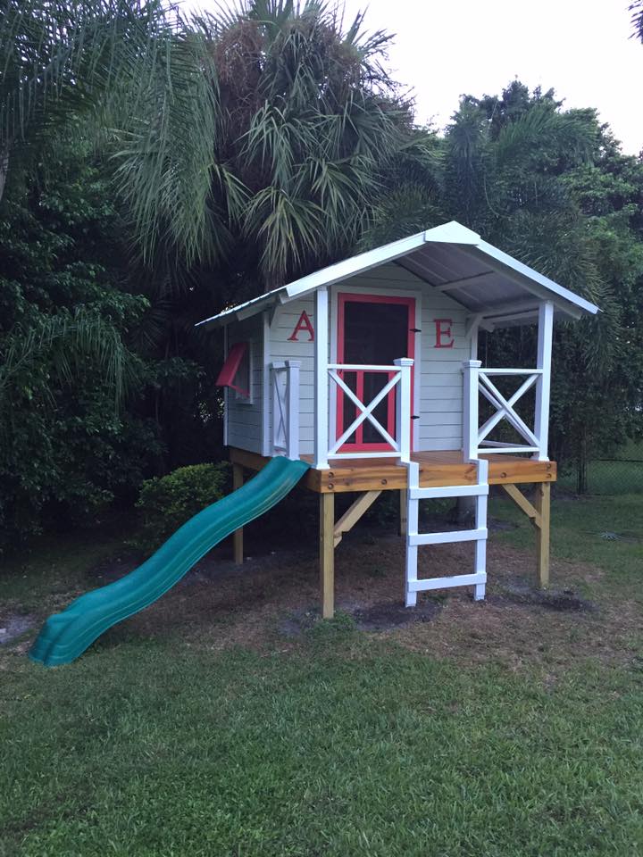 The highlight of the party was the custom made clubhouse that was built by Ava's dad. It was a labor of love that was completed the day before the party. Complete with shutters, a slide and a monogram for the birthday girl and her little sister.