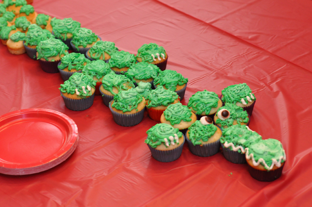 Dawn and the birthday girl made this adorable alligator made of cupcakes.