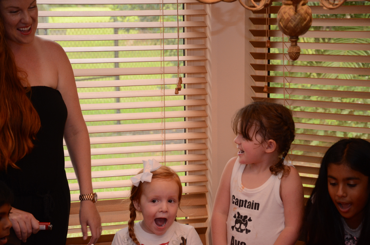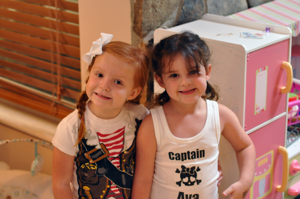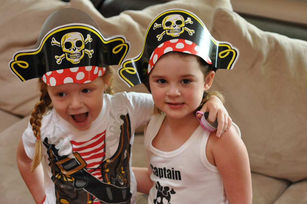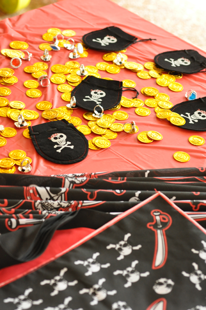 The kids loved dressing up like pirates. The birthday girl "Captain Ava" wore a custom made shirt by her mom. And the gold coins and jewelry were a hit!!