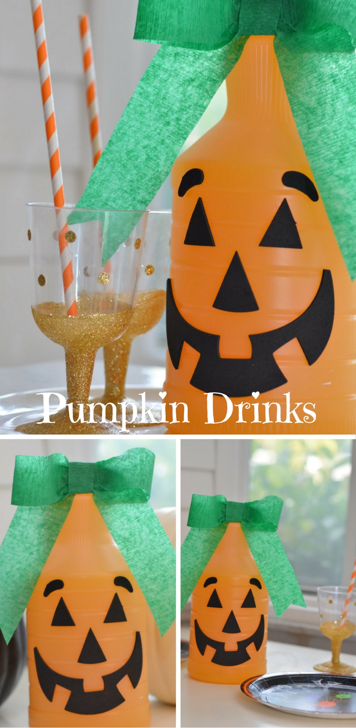 This Jack O Lantern Pumpkin Drink is an easy DIY that is ready in less than 5 minutes. All you need is a bottle of juice and pumpkin stickers.