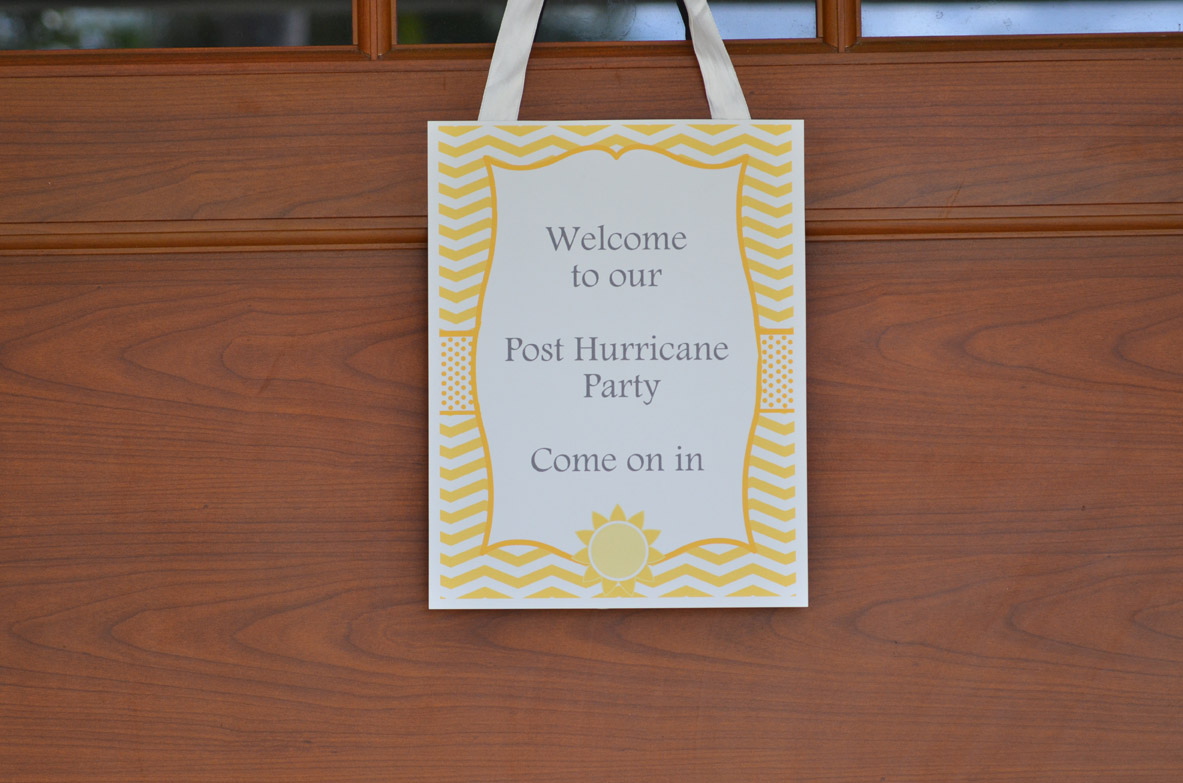 I am excited to share our Sunshine Party Celebrating Hurricane Matthew leaving South Florida. As a kid and young adult hurricanes were exciting because they normally resulted in Hurricane parties with school and work being canceled. You and your closest friends and family all hunker down with water, food, a grill and lots of drinks. As an adult, mother and homeowner hurricanes have a different focus. When we bought our home the 30+ windows and 7 exterior doors were a huge selling point.
