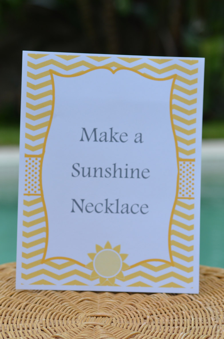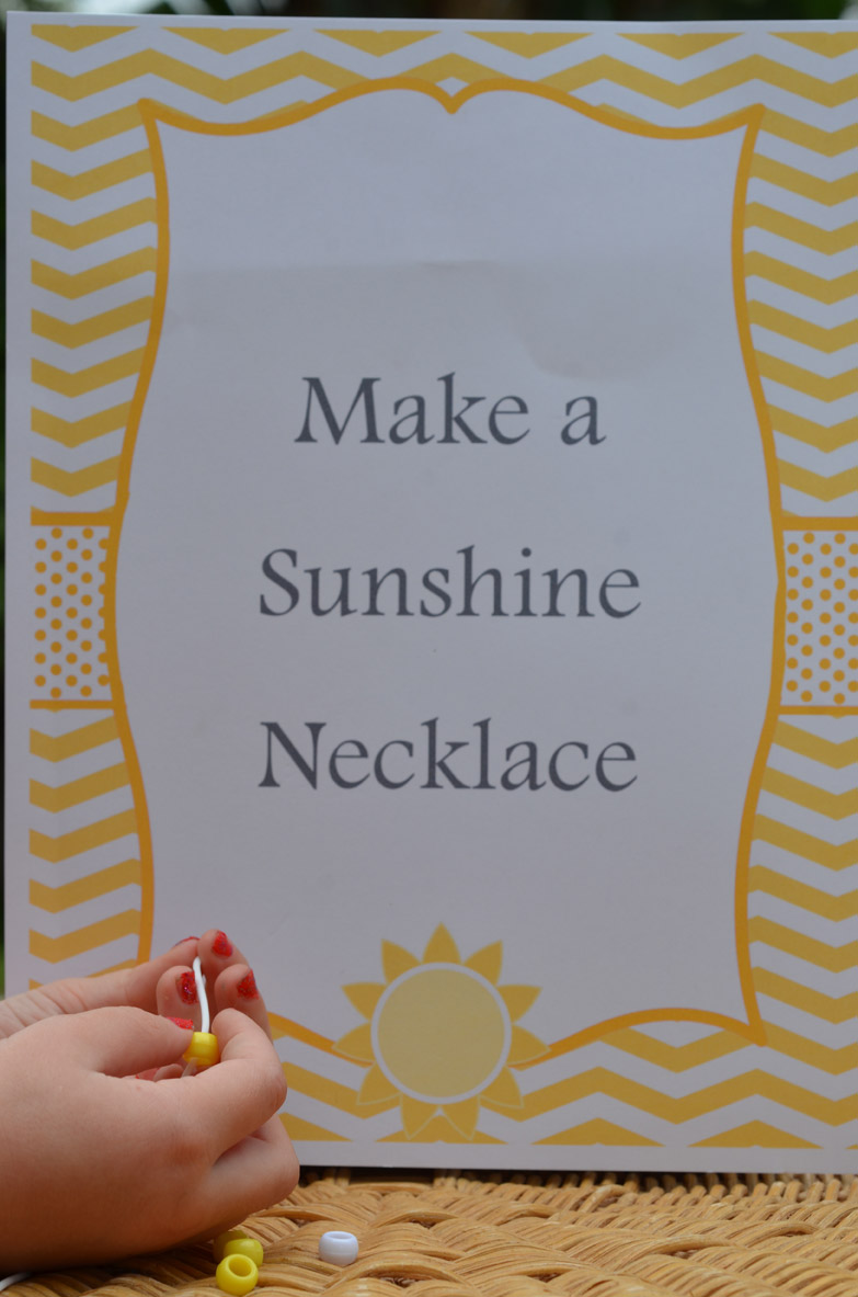 Our goal was for the parents to be working helping take down the shutters we planned fun activities for the kids to keep them busy. We setup a station for making sunshine necklaces. Download the Make a Sunshine Necklace Sign.