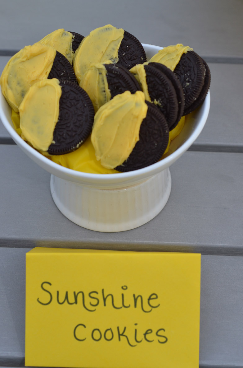 Sunshine cookies were made by dipping Oreos into the yellow candy melts.