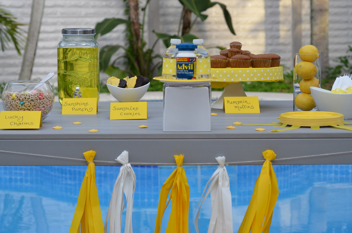 In South Florida we dodged a bullet We continue to pray for all those affected by the storm and count our blessings Now that the storm is over the thought of taking our shutters down get overwhelming. Since we evacuated to my sister in laws home we thought we should continue our hurricane party with a Post Hurricane Celebration. When you live in the sunshine state you can take the sunshine for granted. After a full day of rain and wind that forces you to stay inside the first thing you want to do when the storm passes is go outside and enjoy the sunshine. Bailey and I knew we wanted to host a Sunshine Party!