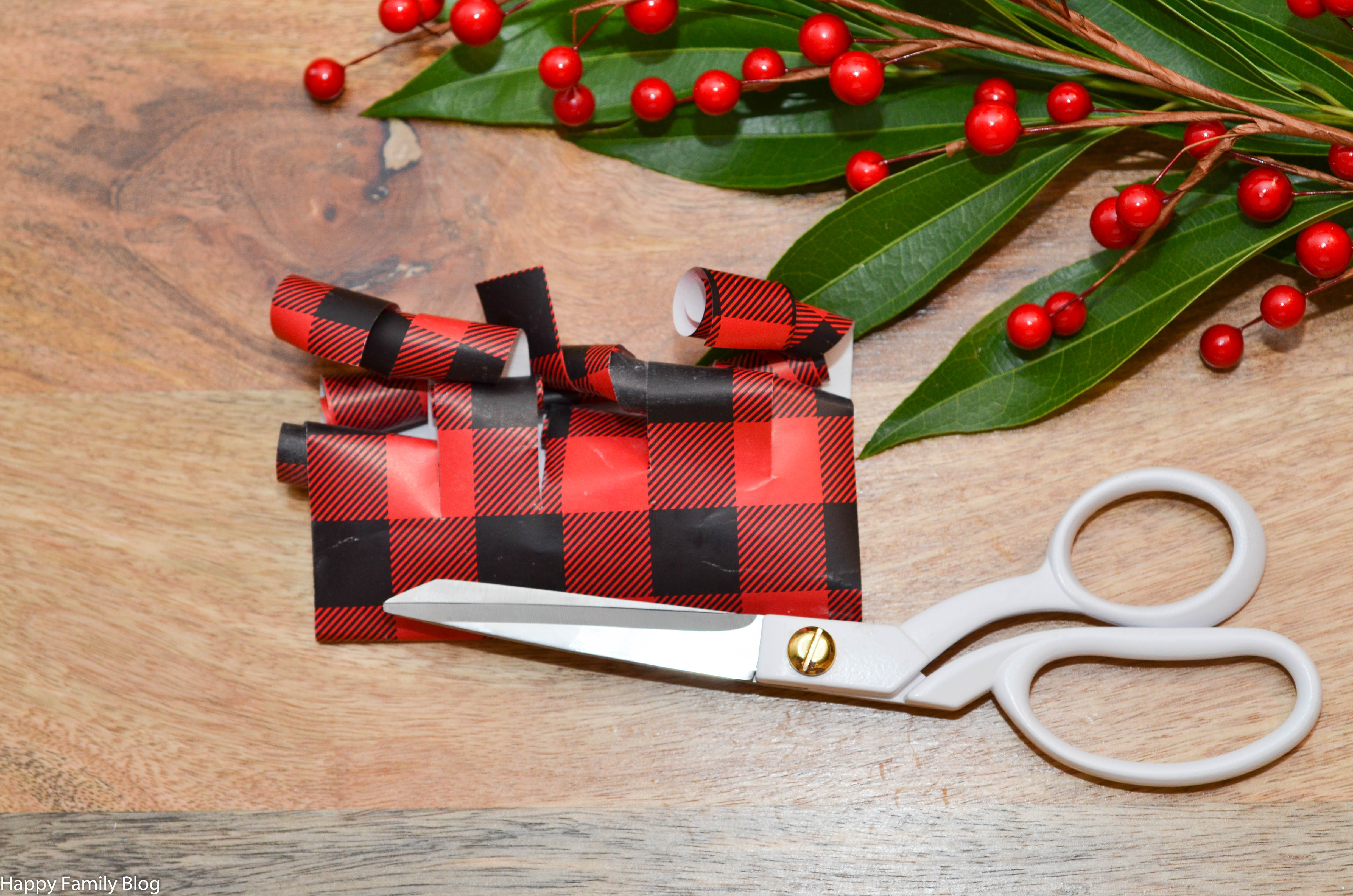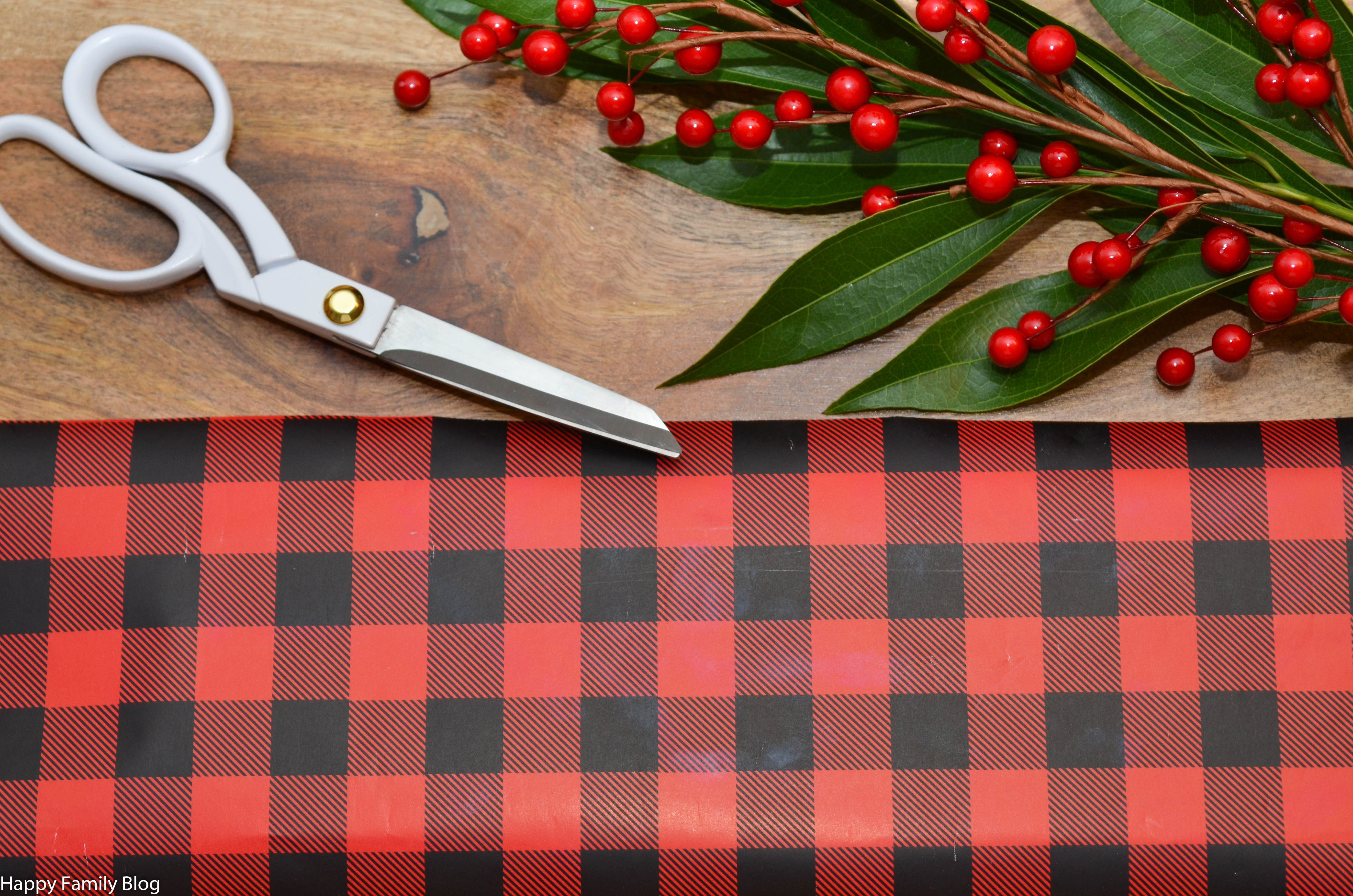If you follow my blog or my social channels you now that I am in love with this buffalo plaid.  When you find a wrapping paper that you love you don't want to throw away a single piece of it.  I hope I am not the only one.  Instead of saving small scrap pieces I use them to create custom bows for my gifts.  They are simple and add so much to your wrapping.  The other great part is that all the supplies you will already have out if you are wrapping a git.