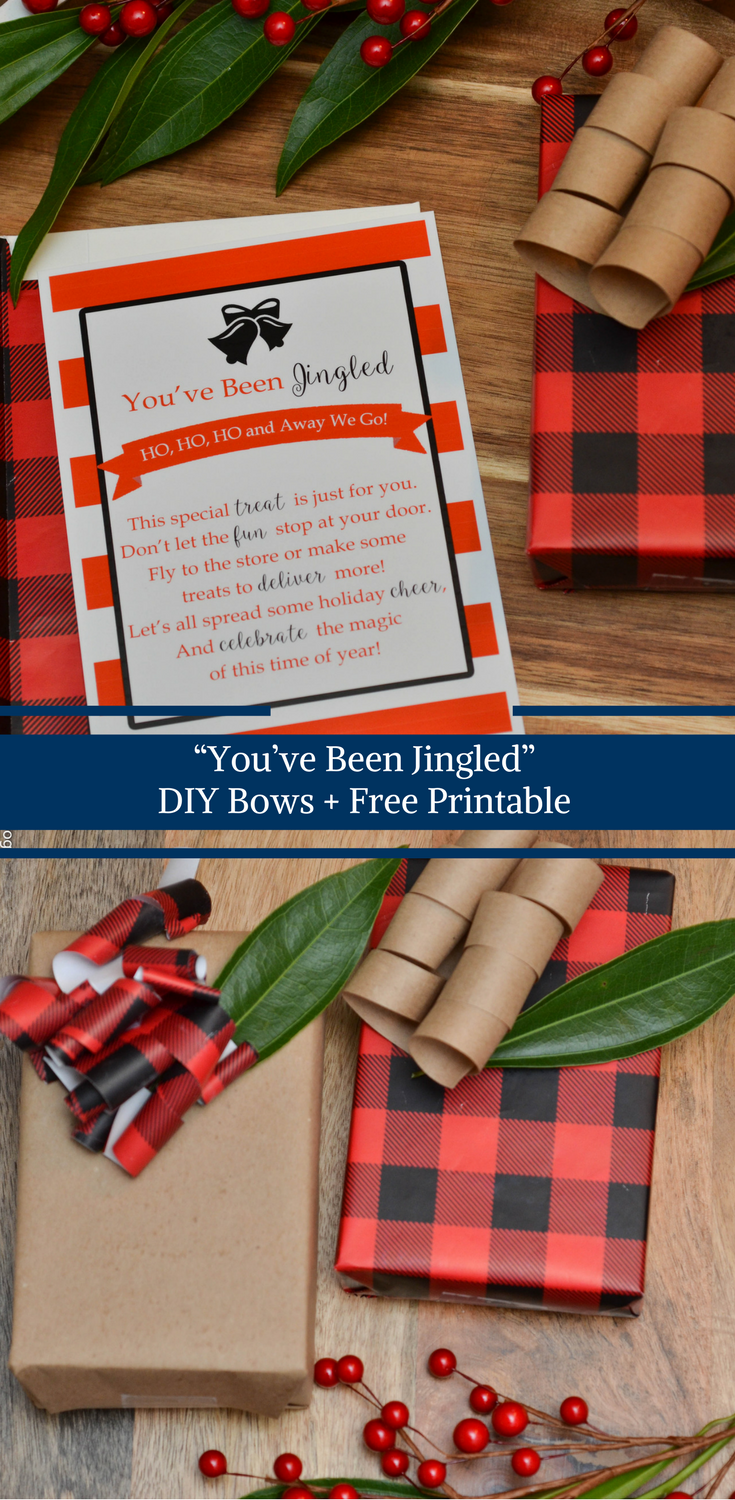 “You’ve Been Jingled” including a free printable and how to make your own Christmas bows. DIY bows from your favorite wrapping paper by Happy Family Blog